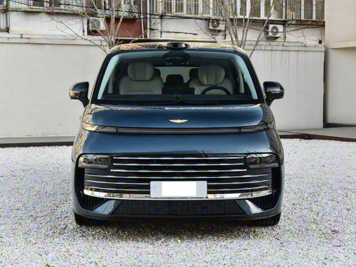 我们首先来看新车的外观设计方面,银河V900的车头设计堪称"中式美学"的典范。前脸采用"星河长虹"贯穿式灯带,配合24K曜金天马车标,展现出独特的东方韵味。波浪纹路镀铬中网与隐藏式大灯设计,既保留了传统豪华感,又融入了现代科技元素。分体式大灯组与镀铬饰条的巧妙结合,使整车前脸在保持MPV稳重气质的同时,增添了时尚动感。这种设计语言不仅提升了夜间辨识度,更彰显了吉利对豪华MPV的独特理解。